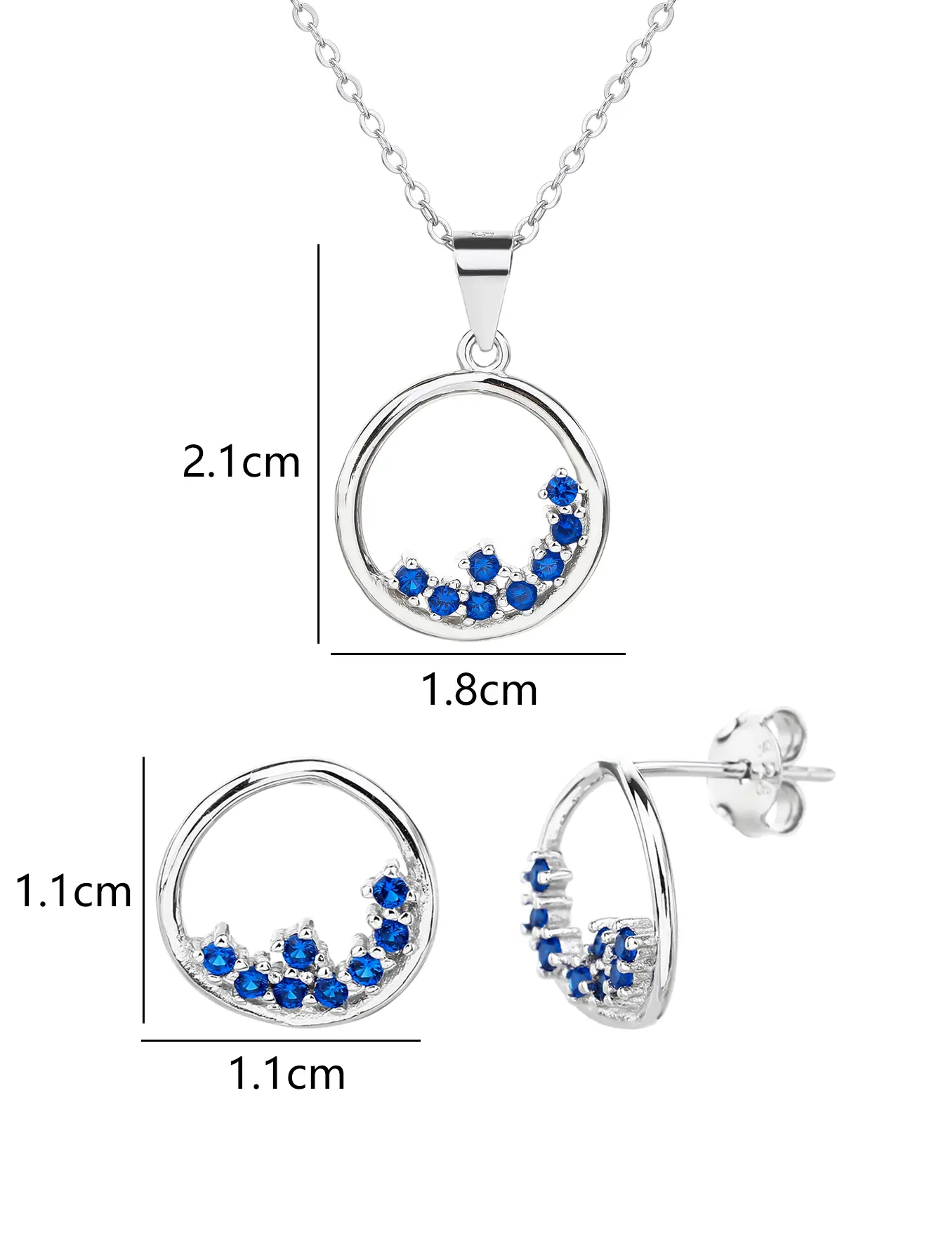 Ez a gyönyörű ékszerszett a teljesség és harmónia szimbólumát hordozza a kör formájával, miközben a kék kövek frissességet, nyugalmat és eleganciát sugároznak.