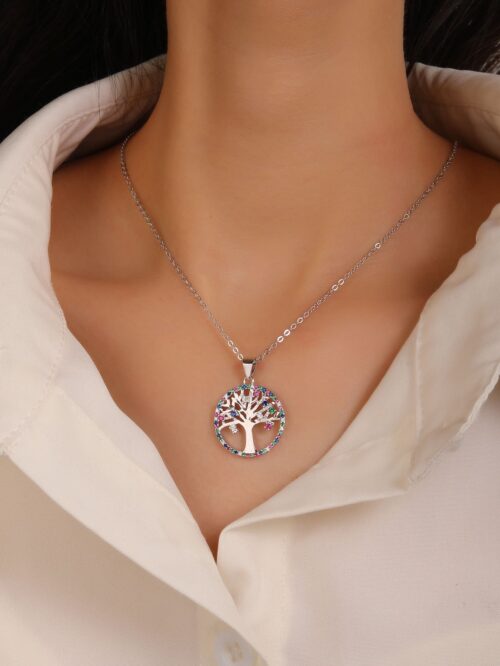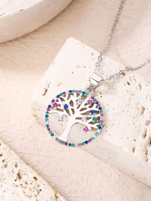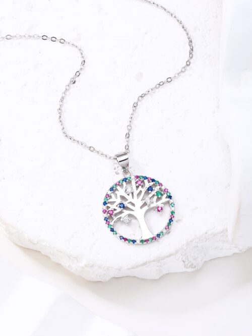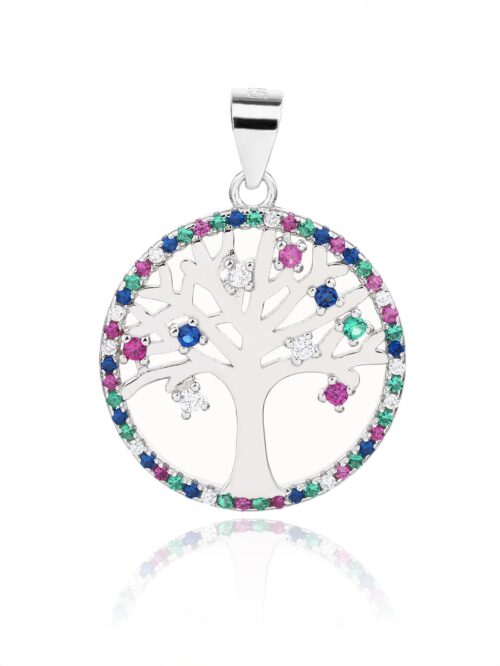 Színes cirkónia köves életfa ezüst medál – az élet színei egy ékszerben
