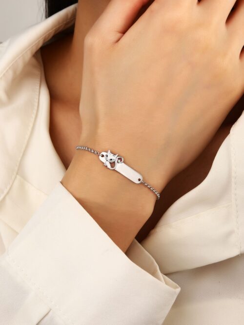 A karkötőt egy édes, finoman kidolgozott cicafigura díszíti, amely minden kislány kedvence lehet.
