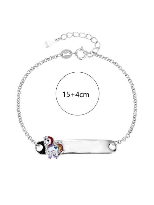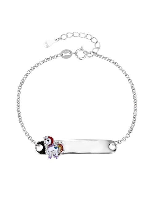 A karkötőt egy színes zománcozott unikornis díszíti, amely a fantázia és az álmodozás jelképe – tökéletes választás vidám, kreatív kislányoknak.