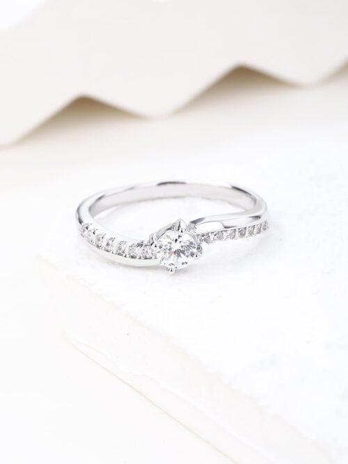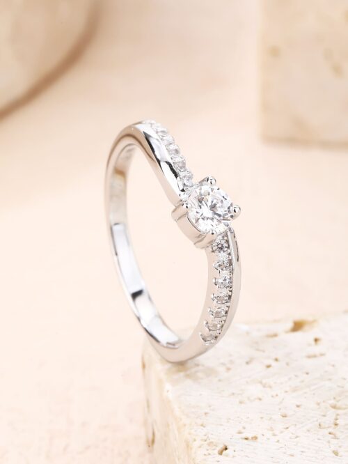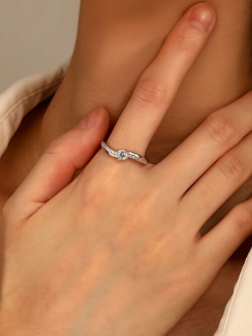 Finoman ívelt vonalai nőies megjelenést kölcsönöznek, miközben a kő minden szögből ragyog.