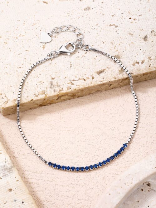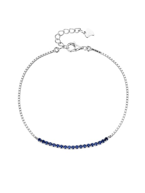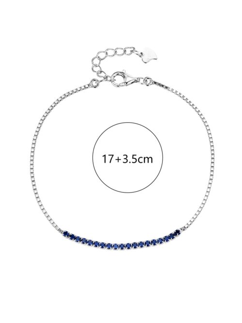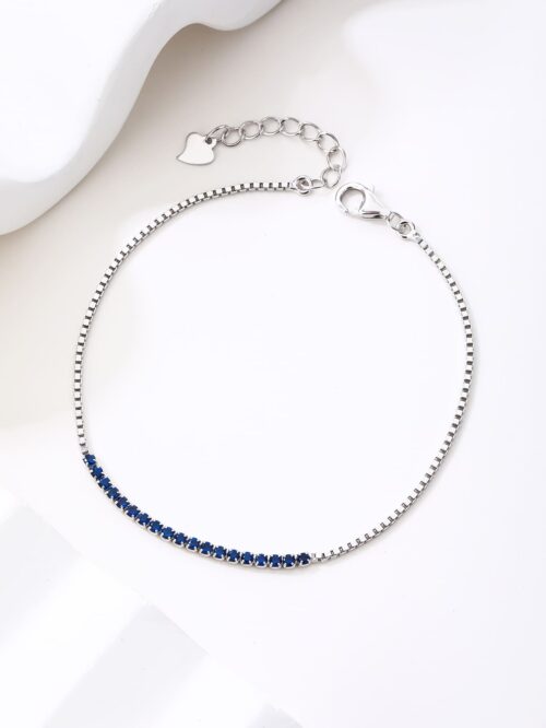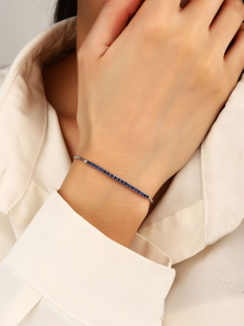 Ez a kecses karkötő letisztult vonalaival és a ragyogó kék cirkónia kövekkel különleges eleganciát sugároz.