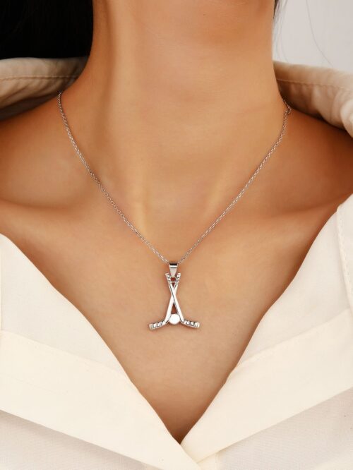 Kő nélküli ezüst hokiütő medál – letisztult sportos elegancia