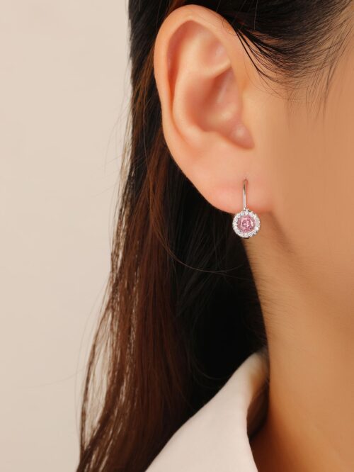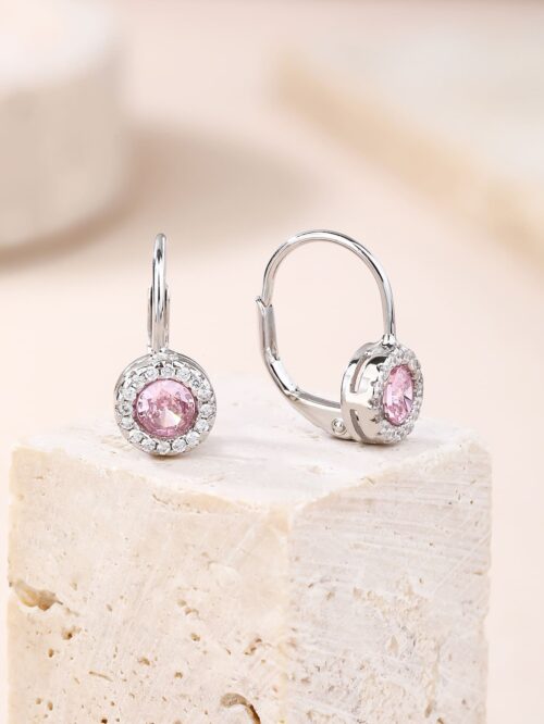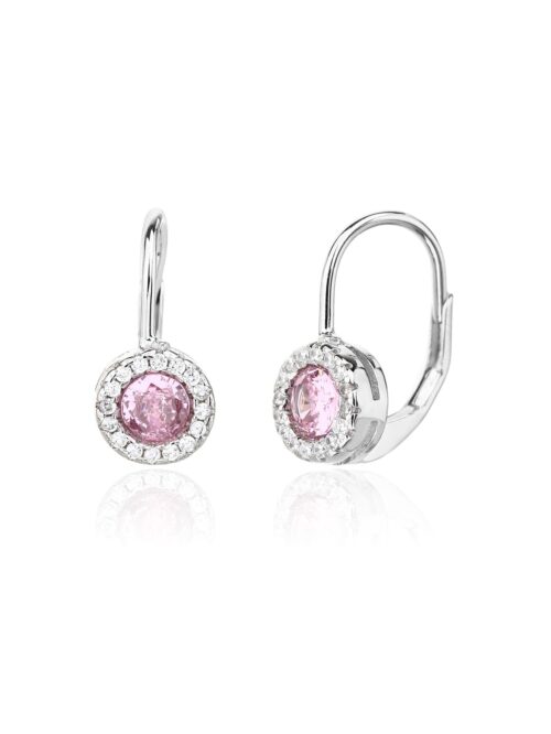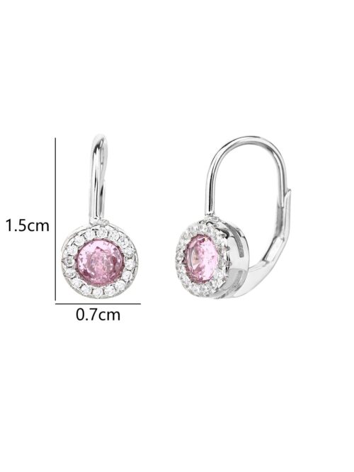 A fülbevaló közepén gyönyörű rózsaszín cirkónia kő ragyog, amelyet apró, fehér cirkóniák gyűrűje vesz körül – tökéletes harmóniát teremtve a nőies lágyság és a fényes elegancia között.
